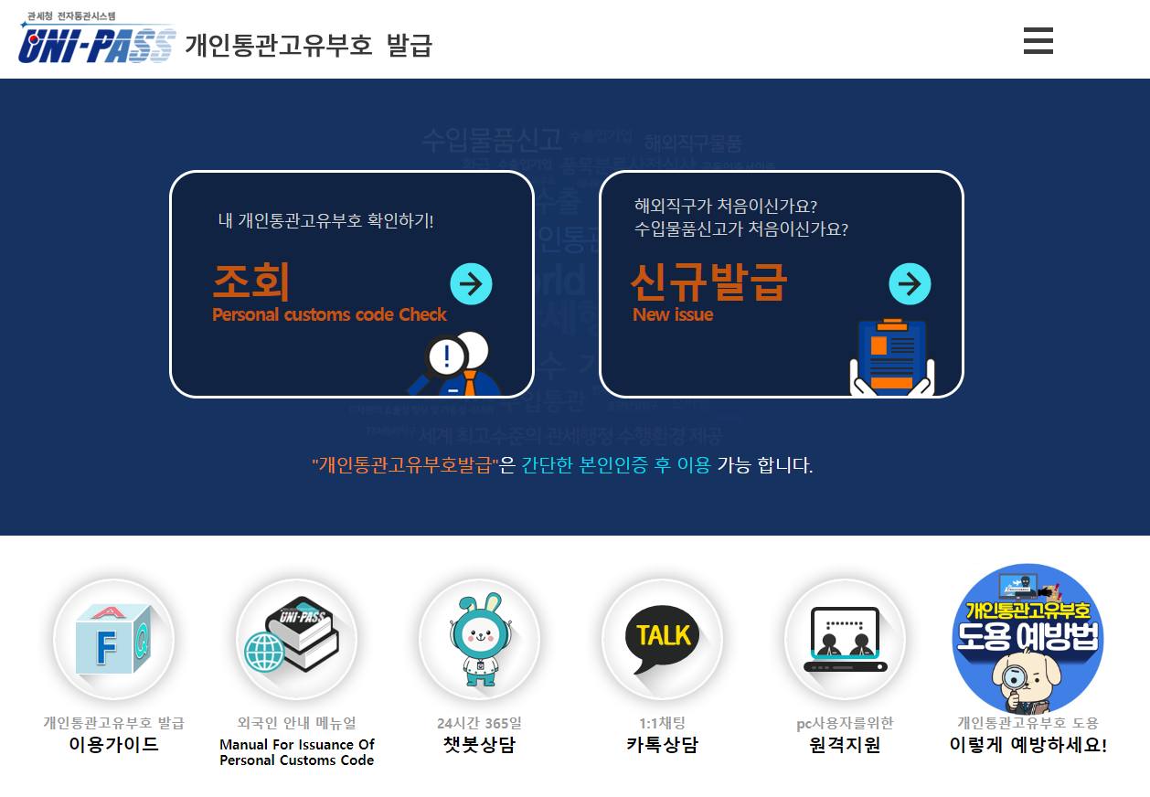 네이버에서 개인고유통관번호를 검색하거나 관세청을 검색해서