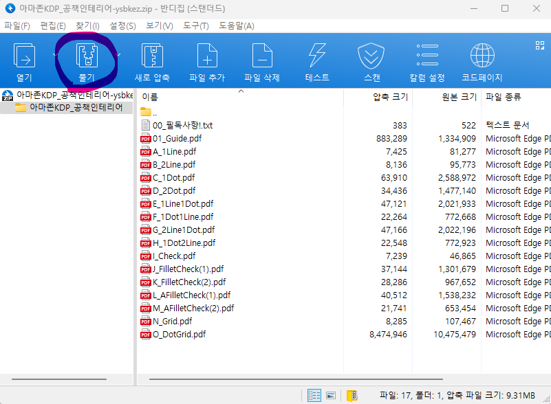 저는 지난번 다운로드 받았던 무료 아마존 KDP 공책 파일을 압축해제 할꺼에요.