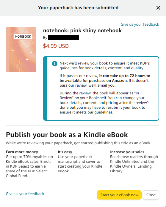 마지막으로 Publish Your Paperback Book을 선택해요.