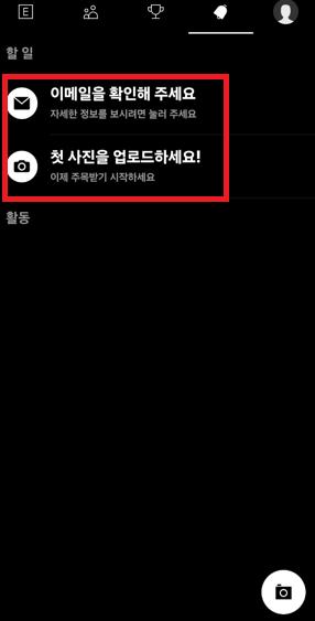 일단 메일인증을 하고 첫사진을 업로드하는데