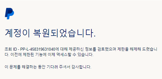 페이팔 비즈니스 계정 가입하니 검토를 진행하더라구요.