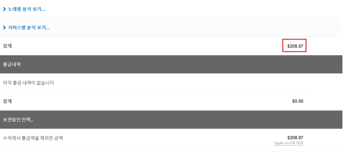 디스트로키드로 음원 배포만 했을 뿐인데 자동으로 저렇게 수익이 발생하니 정말 좋은 파이프라인이에요.